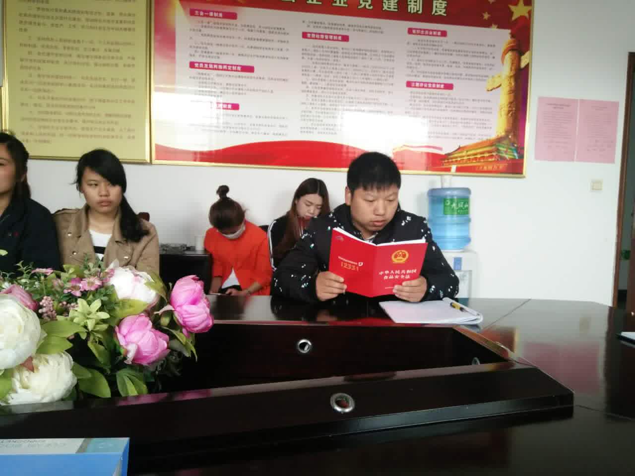 為進(jìn)一步加強(qiáng)食品安全宣傳教育工作,推廣普及《食品安全法》,增強(qiáng)全體員工對(duì)食品安全的參與意識(shí),提高全體員工的食品安全意識(shí)和自我保護(hù)能力,營(yíng)造讓消費(fèi)者放心的九鳳泉飲用水消費(fèi)環(huán)境,我公司特在5月份成立“食品安全學(xué)習(xí)培訓(xùn)月”,組織九鳳泉全體員工對(duì)《食品安全法》進(jìn)行統(tǒng)一學(xué)習(xí)培訓(xùn),營(yíng)造食品安全《大宣傳》氛圍。通過(guò)深入宣傳《食品安全法》,強(qiáng)化食品生產(chǎn)經(jīng)營(yíng)者的法律意識(shí)、責(zé)任意識(shí)、誠(chéng)信意識(shí),提升管理水平,提高消費(fèi)者的食品安全維權(quán)意識(shí)和識(shí)別假冒偽劣食品的能力,營(yíng)造人人關(guān)心食品安全,積極參與食品安全建設(shè)的大氛圍
